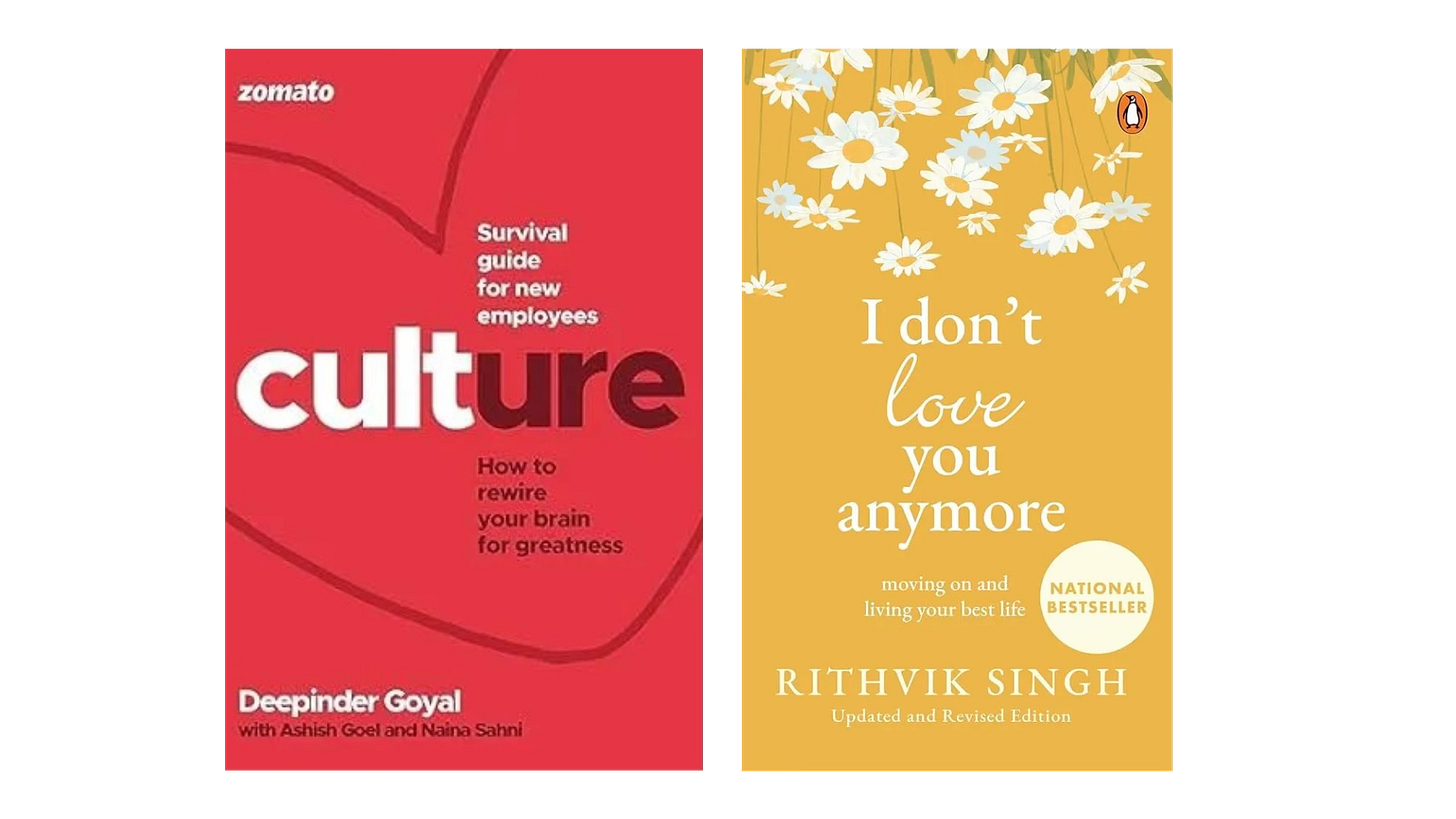 There were two very light reads I swept through - Deepinder Goyal’s Culture - an internal memo they followed at Zomato, given to every employee, and Ritwik’s I don’t don’t love you anymore - which gave me vibes like Rupi Kaur’s work. The latter is nice for mass appeal in college kids, but don’t expect much if you are a literary nerd like me.