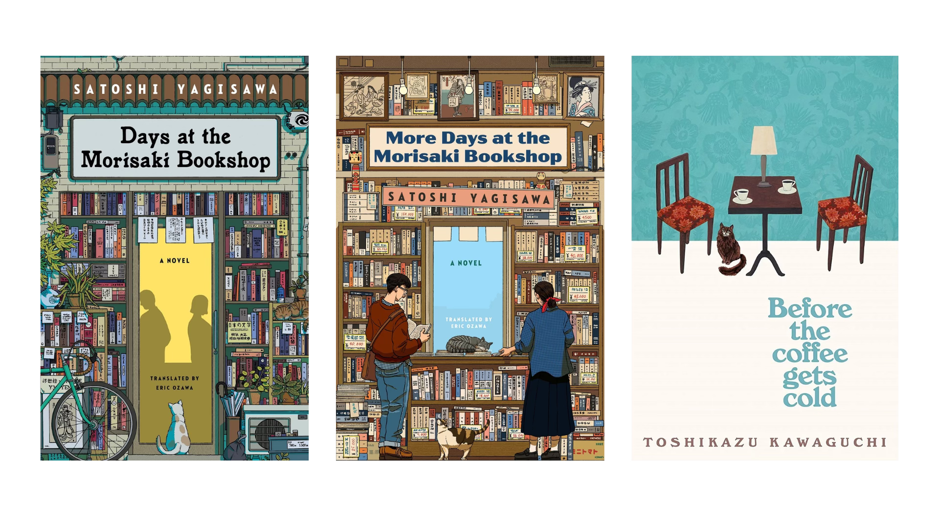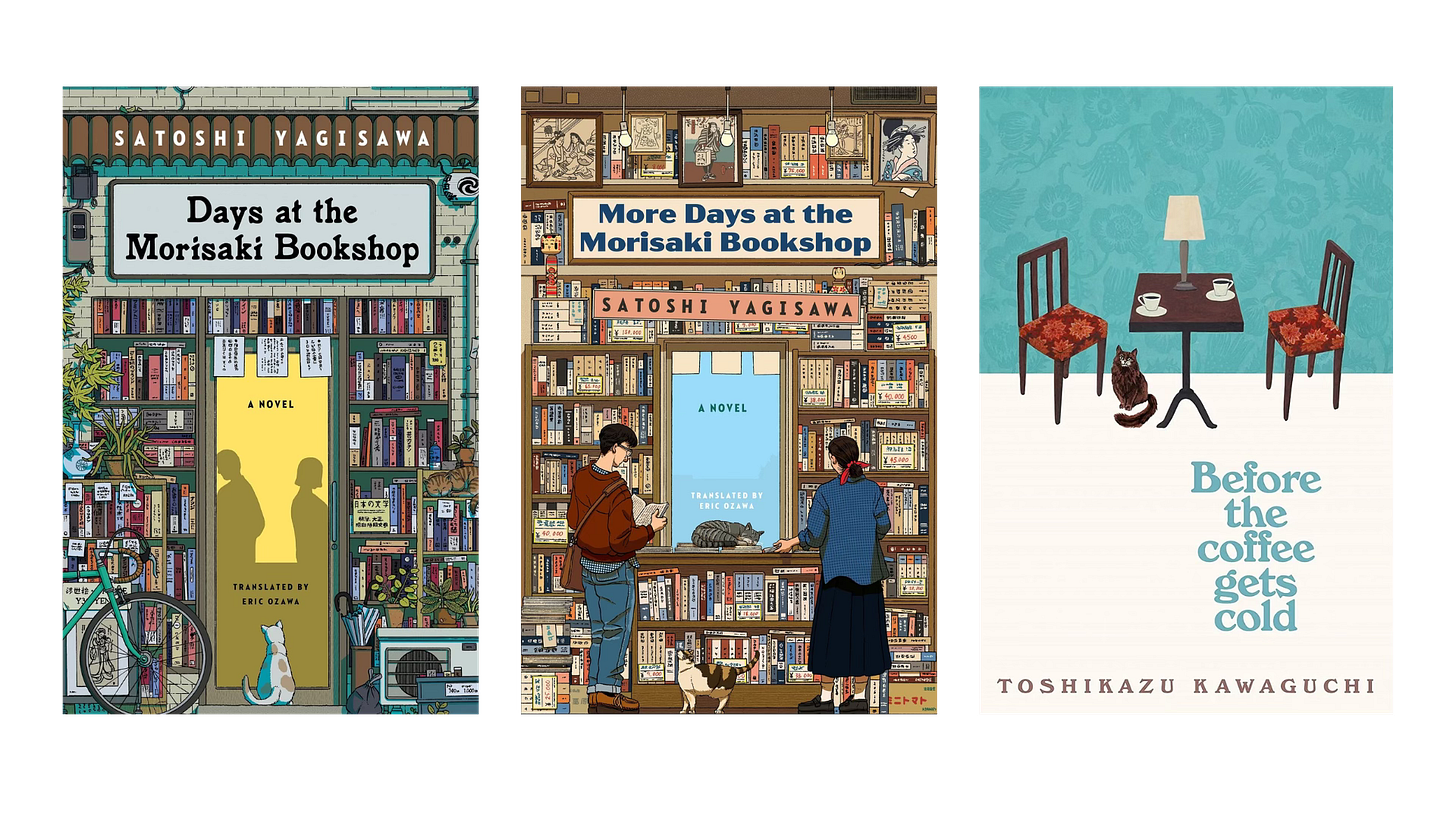 Days at the Morisaki Bookshop and its sequel. Satoshi Yagisawa’s world is built from silence and sunlight. The story doesn’t rush; it lingers like steam rising from a cup.