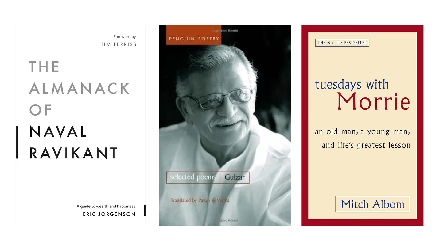 Then came Gulzar’s Selected Poems — words so gentle they barely touched the page.